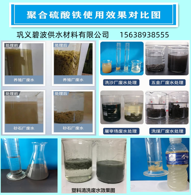聚合硫酸铁由于混凝性能较强,矾花密实,沉降速度快,除浊、脱色、脱油、脱水、除菌、除臭、除藻、重金属离子等功效显著广泛应用于工业用水、各种工业废水、城市污水、污泥脱水等行业的污水处理。饮用水:对具有微污染、含藻类、低温低浊饮用水处理效果更为明显,有效清除水中的悬浮物,汞、铅等重金属。